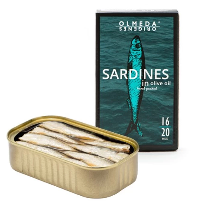Οι σαρδέλες Olmeda Orígenes αλιεύονται στη Γαλικία νωρίς το πρωί χρησιμοποιώντας παραδοσιακές μεθόδους, διαλέγονται, καθαρίζονται μία μία και συσκευάζονται με το χέρι μετά από ελαφρύ ψήσιμο. Αυτό το φυσικό και υγιεινό σνακ χρησιμοποιείται για την παρασκευή τάπας και “pintxos”.