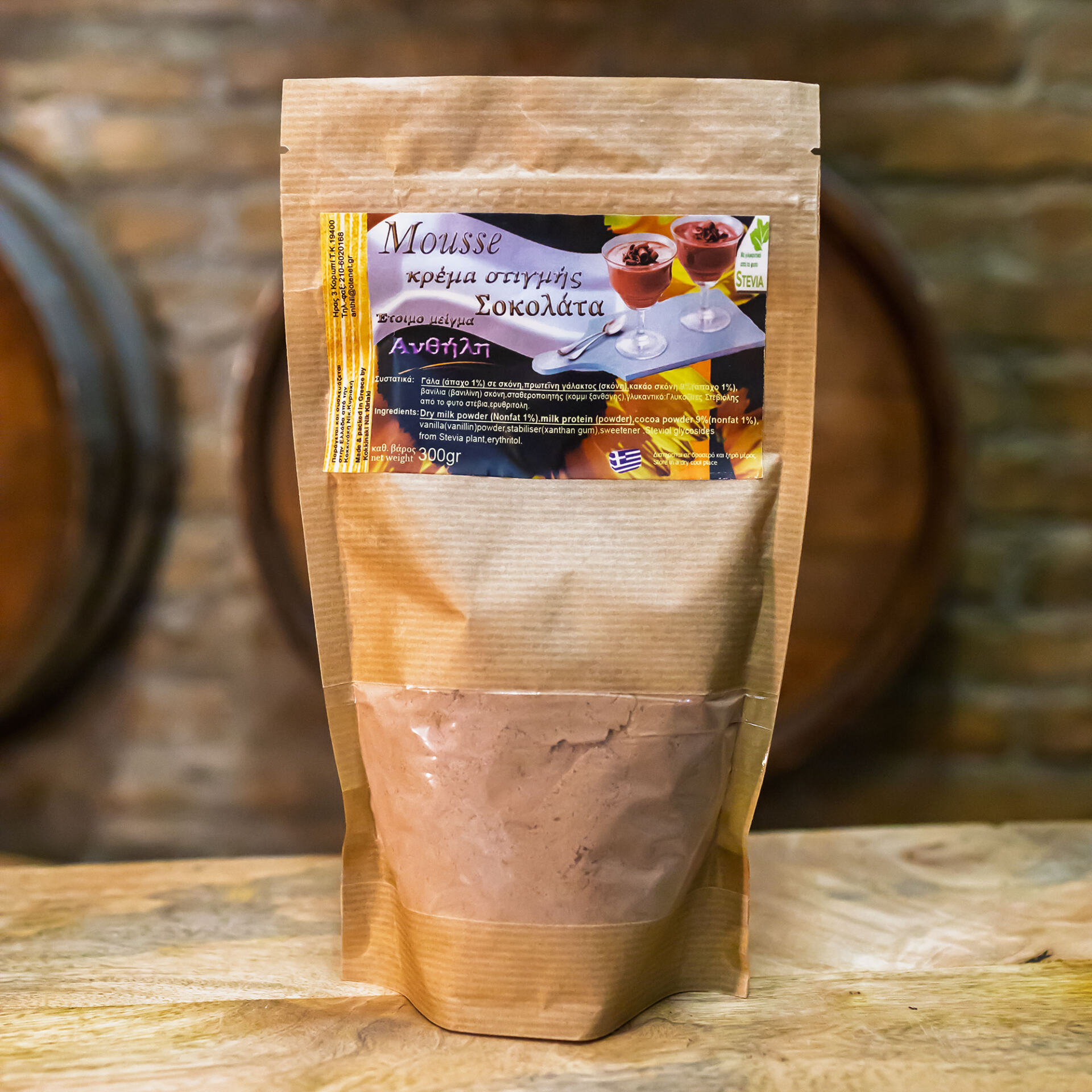 Έτοιμο μείγμα για παρασκευή μους σοκολάτα με stevia, με απαχο γάλα και πρωτεΐνη γάλακτος .