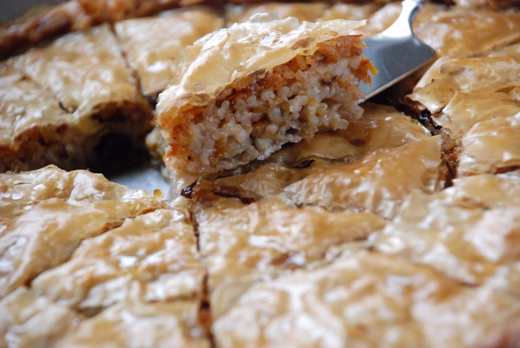 Μακεδονίτικη αυθεντική πίτα , με χειροποίητο φύλλο και γέμιση ρυζιού , κανέλας , βανίλιας