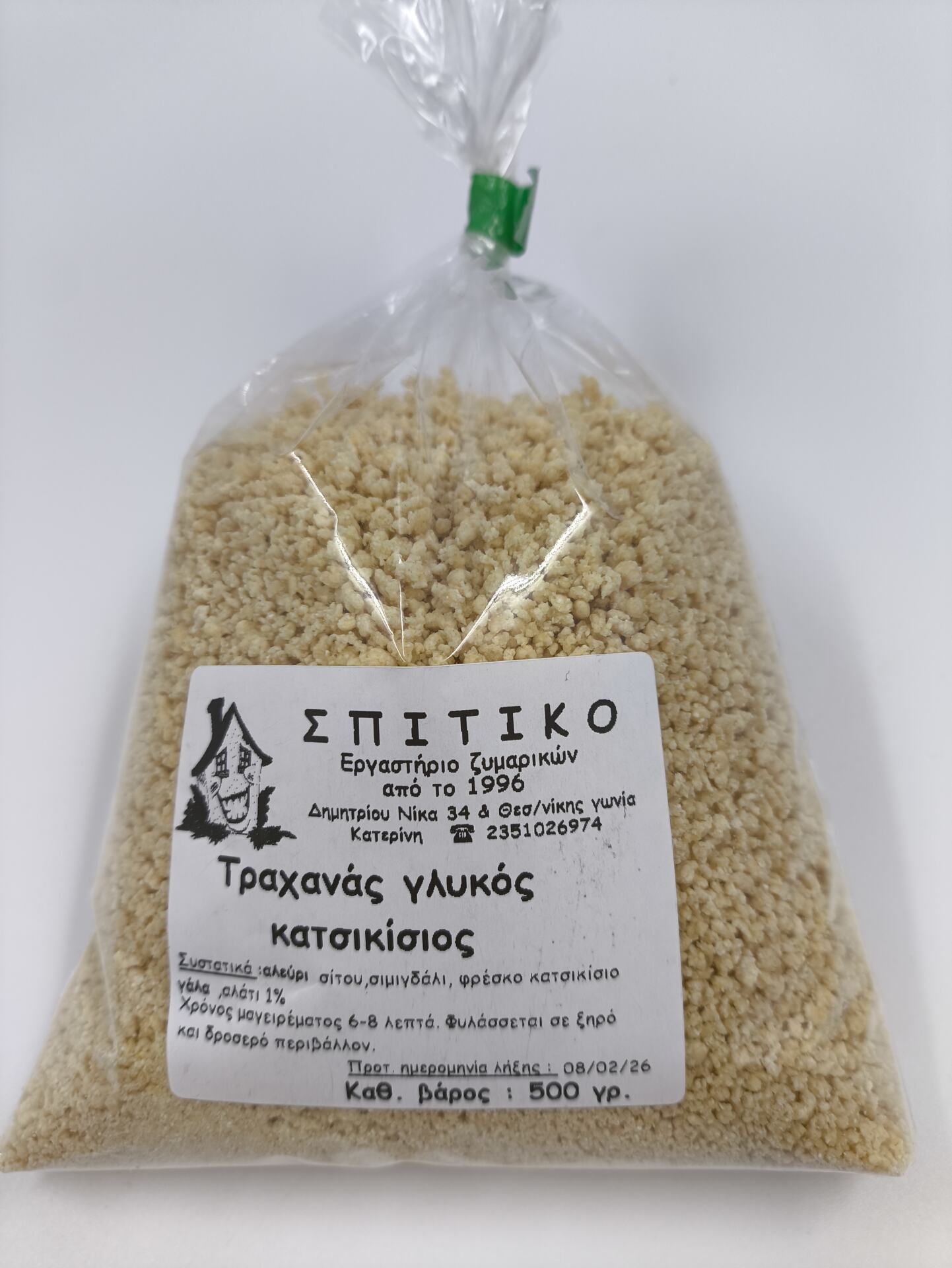 Χωριάτικος χειροποίητος γλυκός κατσικίσιος τραχανάς , με χωριάτικο αλεύρι σίτου και φρέσκο κατσικίσιο γάλα
