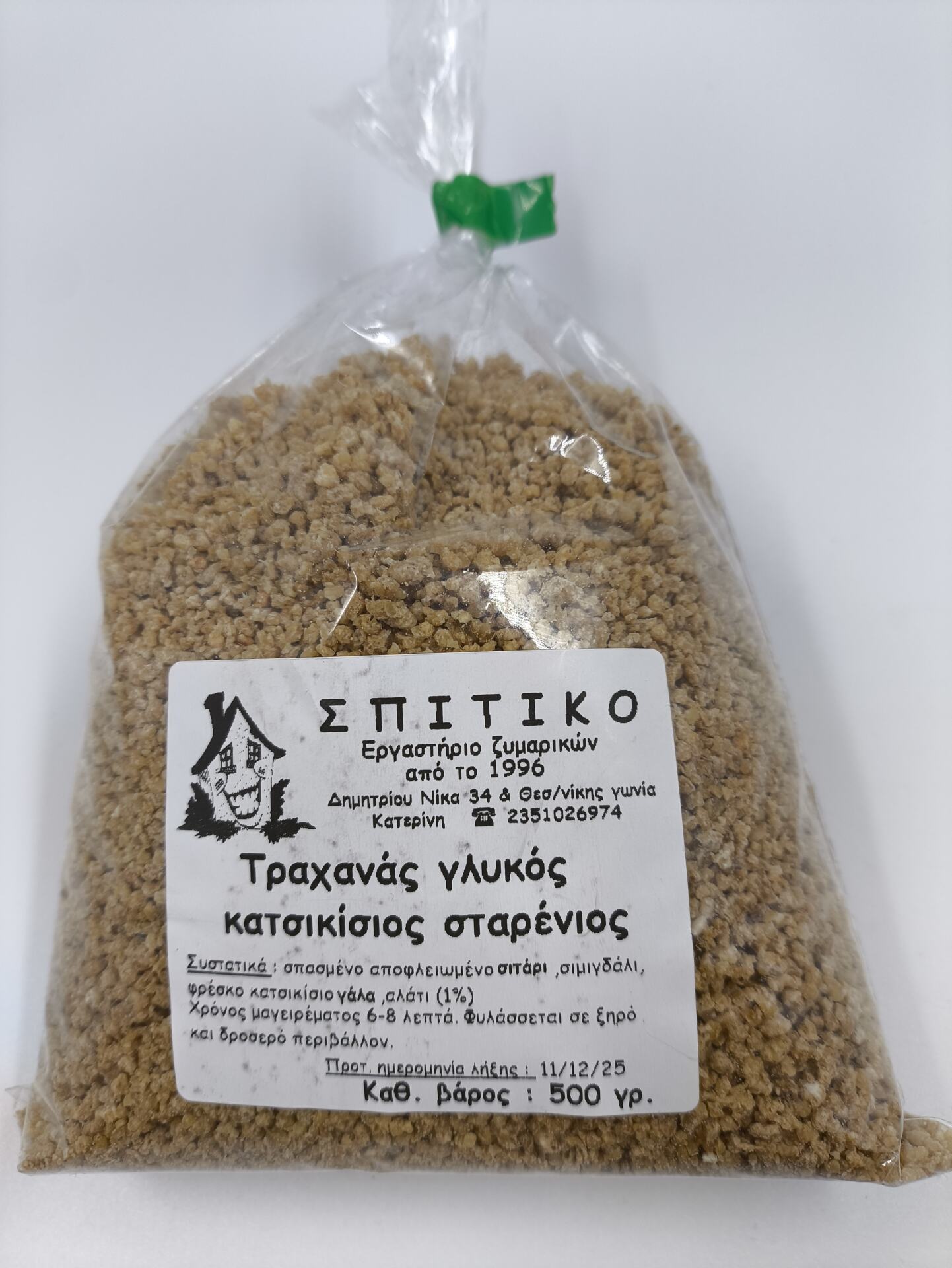 Χωριάτικος χειροποίητος γλυκος, κατσικίσιος, σταρένιος τραχανας , με φρέσκο κατσικίσιο γάλα και σπασμένο αποφλοιωμένο σιτάρι