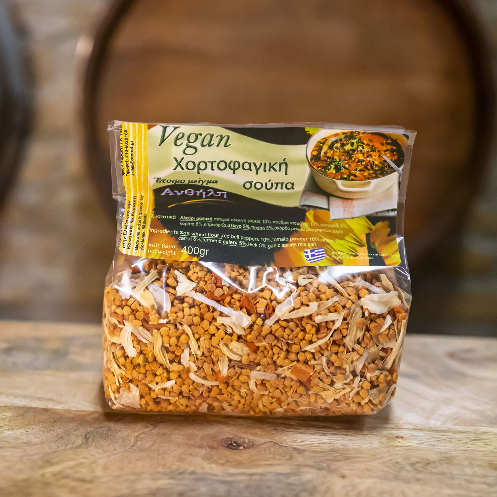 Παραγωγός: ΑνθήληΗ χορτοφαγική σούπα Ανθήλη φτιάχνεται με επιλεγμένες πρώτες ύλες και πολύ μεράκι φέρνοντας στο πιάτο σας ιδιαίτερους γευστικούς συνδυασμούς.