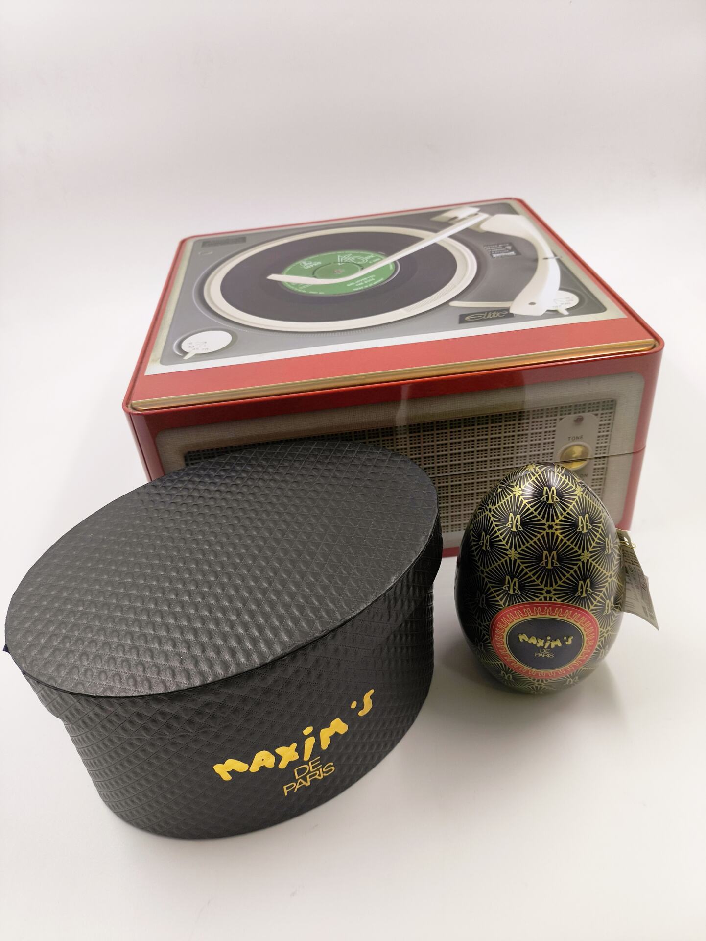 Mεταλλικο μαυρο αυγο απο τον οικο Maxim de Paris γεμιστο με σοκολατακια