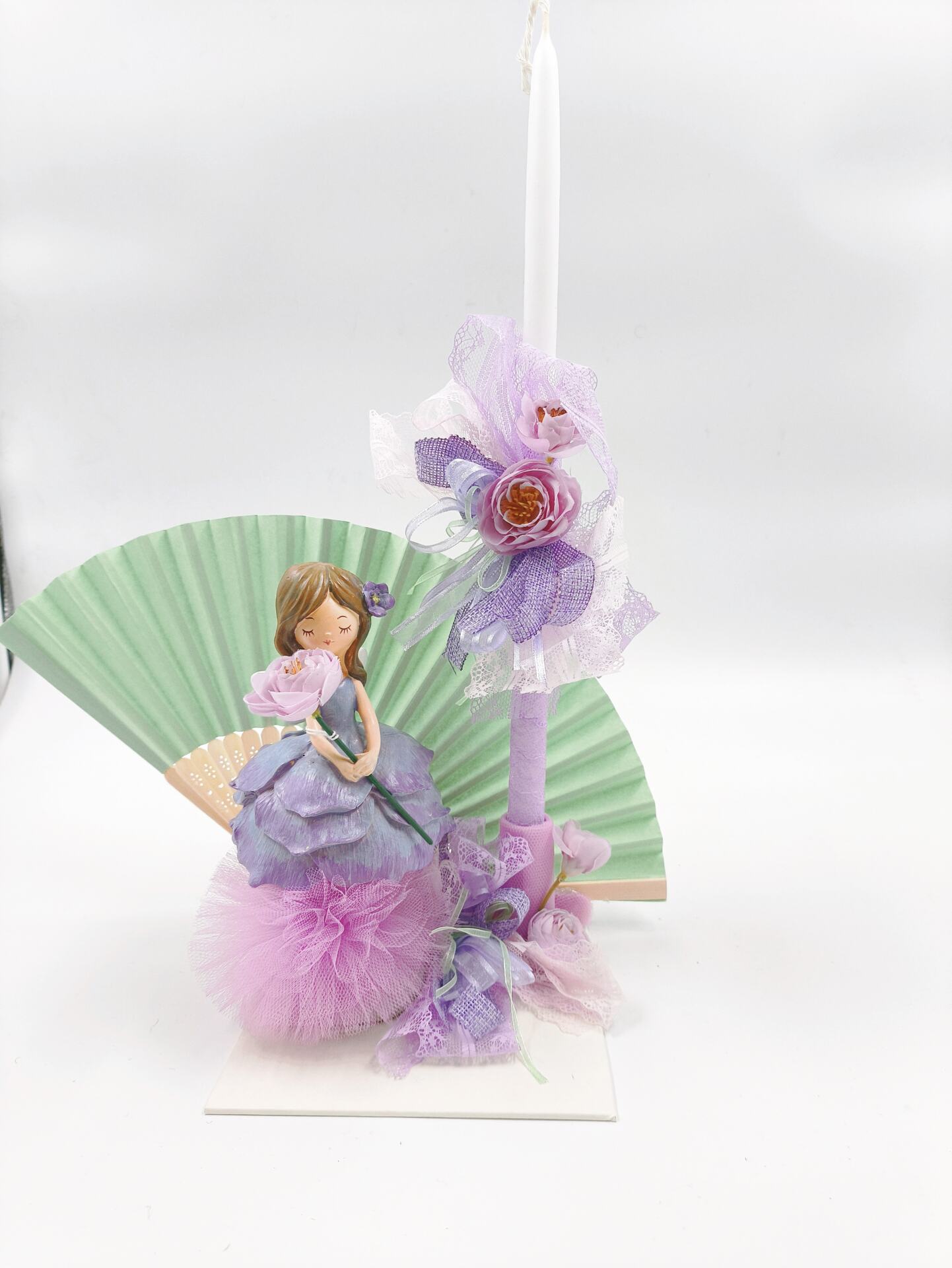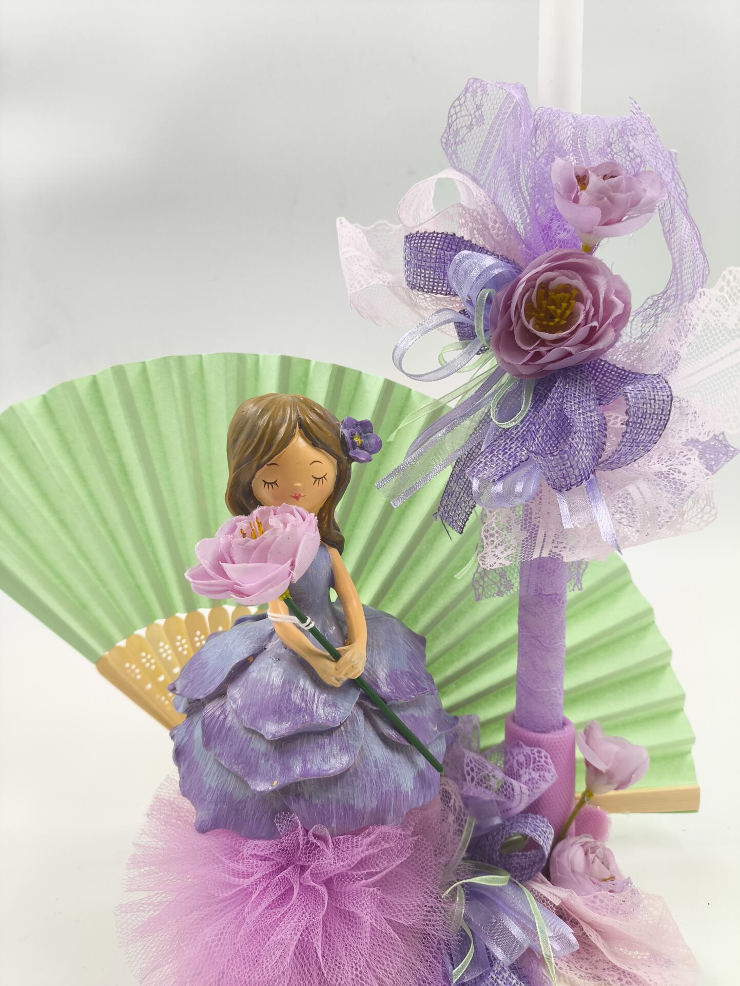 Πασχαλινή σύνθεση με διακοσμητική φιγούρα λουλουδονεράιδας, σε σετ με την αντίστοιχη λαμπάδα
