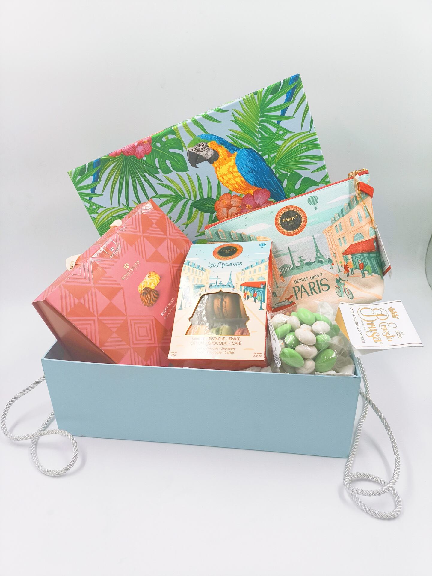 Mοναδικο γαλαζιο κουτι με μοτιβο απο εξωτικους παπαγαλους