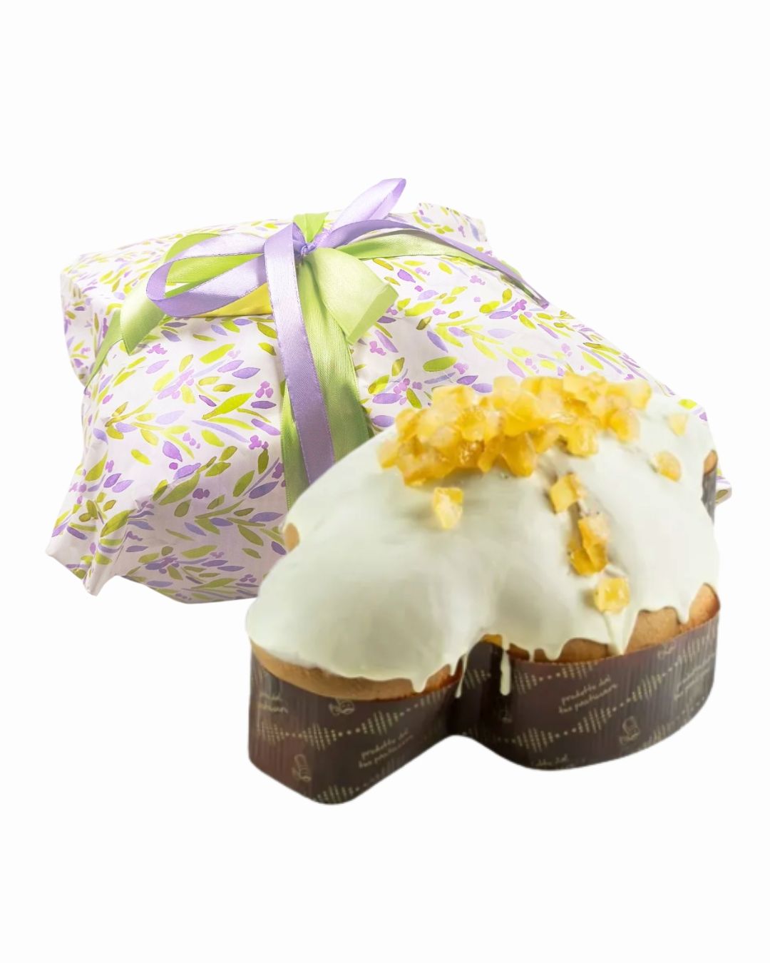 Παραδοσιακή χειροποίητη ιταλική colomba αργής ωρίμανσης γεμιστή με κομμάτια λεμονιού απο την Σικελία, τα οποία συνδυάζονται μοναδικά με τα κομμάτια απο ολόκληρα μαύρα κεράσια, με επικάλυψη γλάσο λευκής σοκολάτας