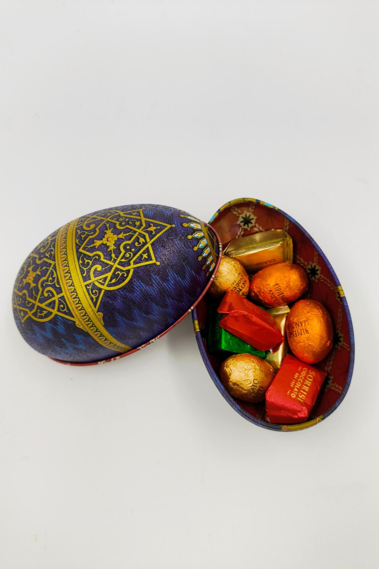 Μεταλλικό ιταλικό αυγό γεμιστό με χειροποίητα σοκολατάκια απο το Τορίνο