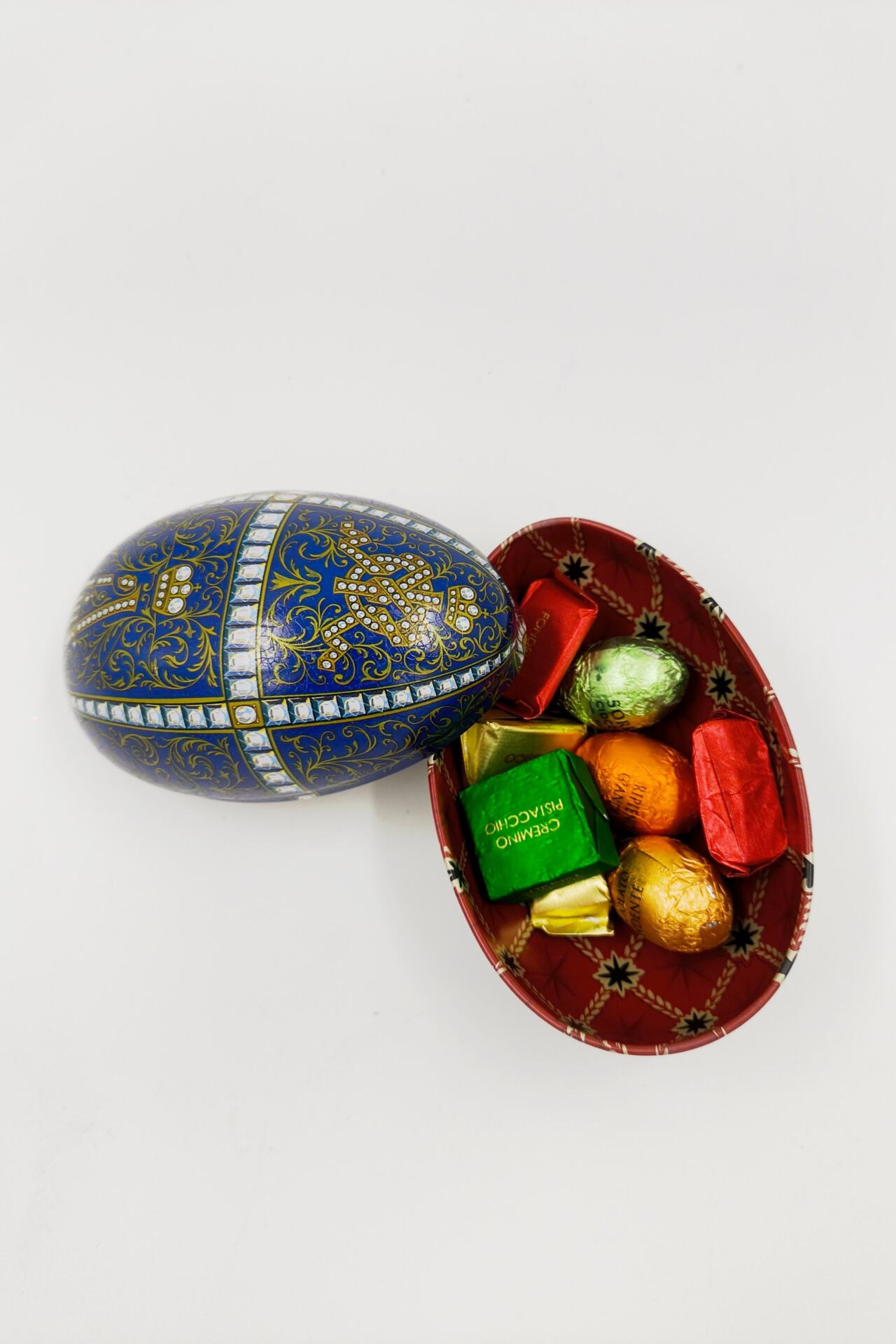 Μεταλλικό ιταλικό αυγό γεμιστό με χειροποίητα σοκολατάκια απο το Τορίνο