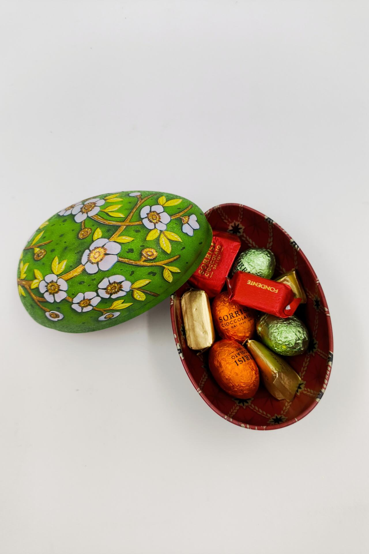 Μεταλλικό ιταλικό αυγό γεμιστό με χειροποίητα σοκολατάκια απο το Τορίνο
