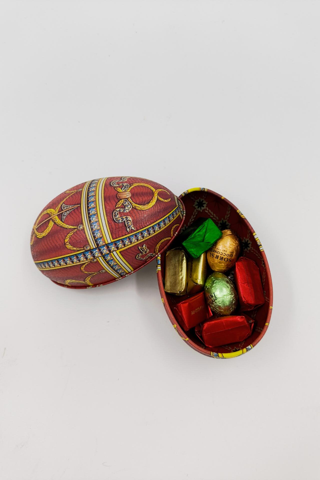 Μεταλλικό ιταλικό αυγό γεμιστό με χειροποίητα σοκολατάκια απο το Τορίνο