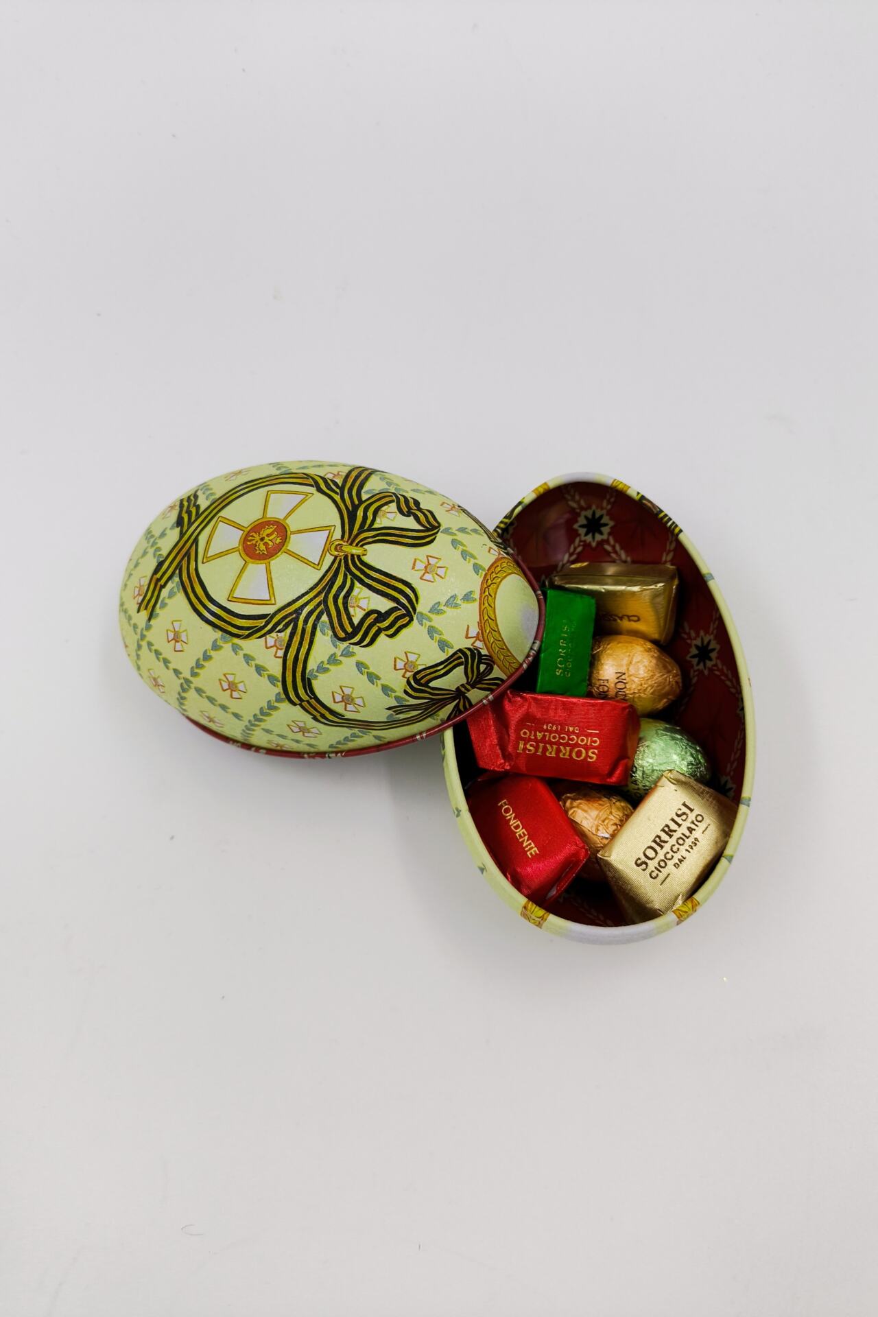Μεταλλικό ιταλικό αυγό γεμιστό με χειροποίητα σοκολατάκια απο το Τορίνο