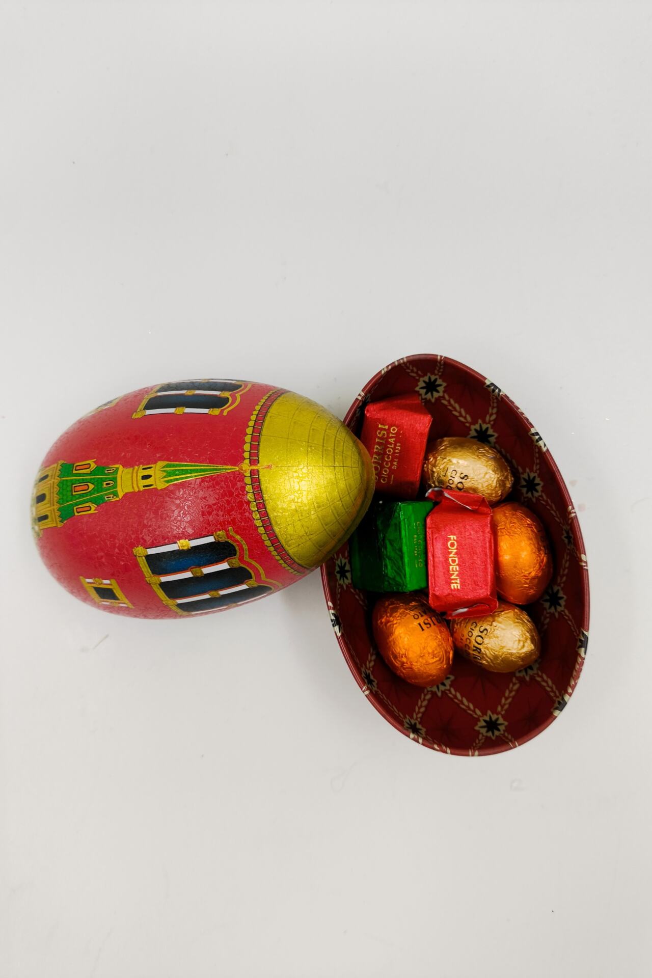 Μεταλλικό ιταλικό αυγό γεμιστό με χειροποίητα σοκολατάκια απο το Τορίνο