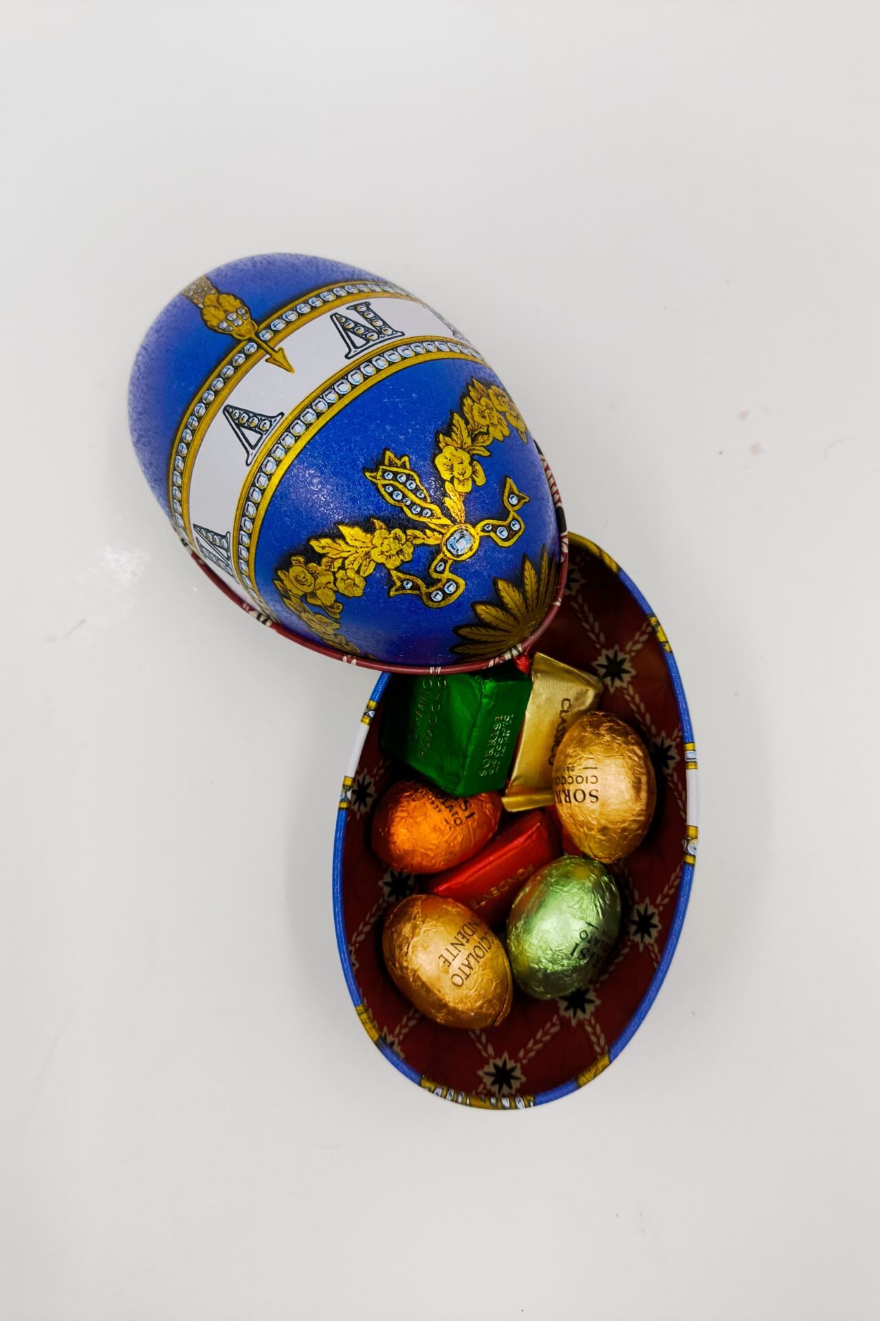 Μεταλλικό ιταλικό αυγό γεμιστό με χειροποίητα σοκολατάκια απο το Τορίνο