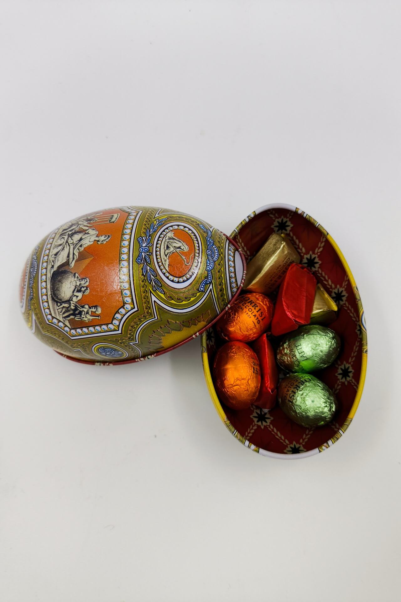 Μεταλλικό ιταλικό αυγό γεμιστό με χειροποίητα σοκολατάκια απο το Τορίνο
