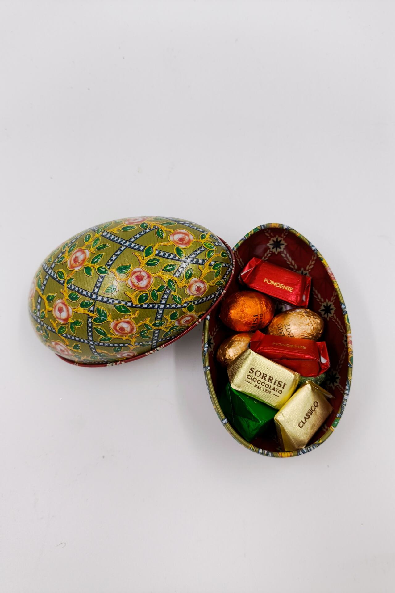 Μεταλλικό ιταλικό αυγό γεμιστό με χειροποίητα σοκολατάκια απο το Τορίνο