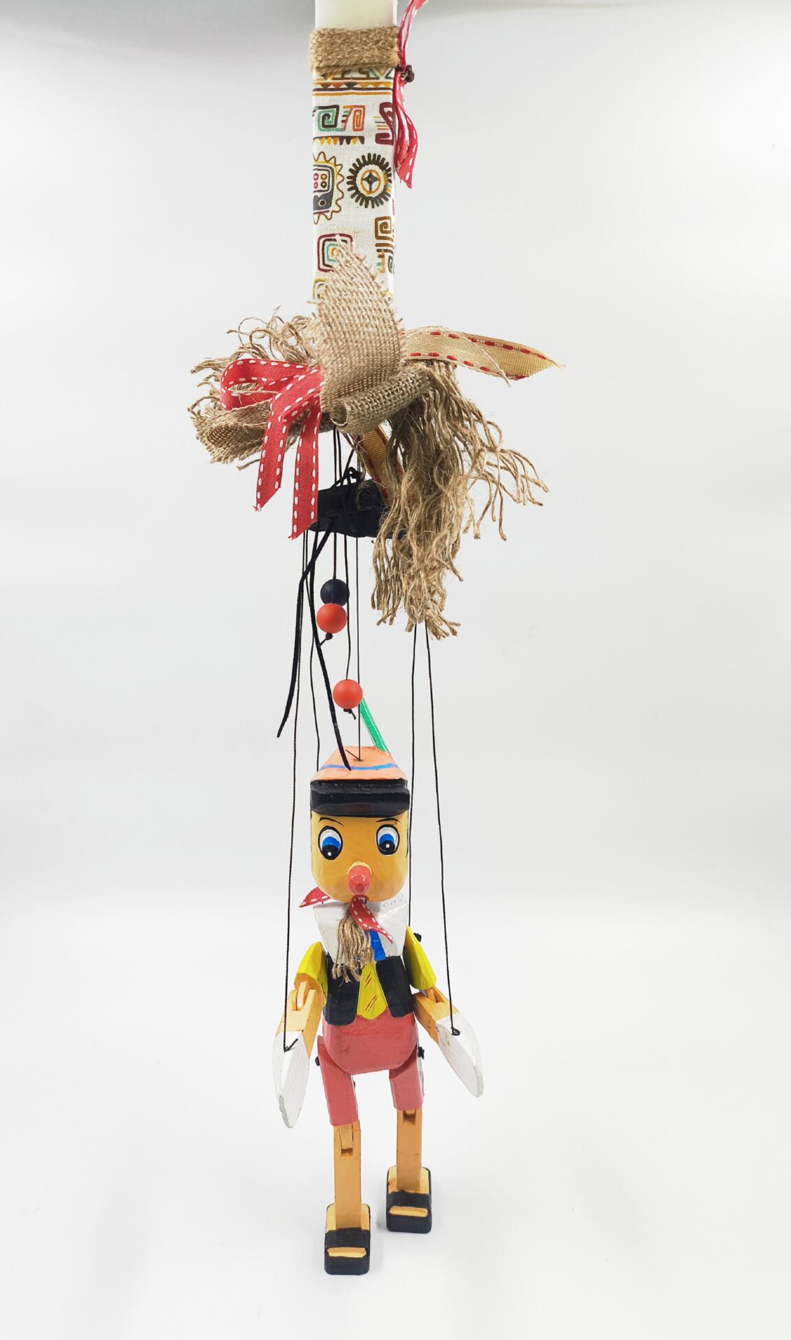 Χειροποίτη λαμπάδα με ξύλινη μαριονέτα πινοκιο