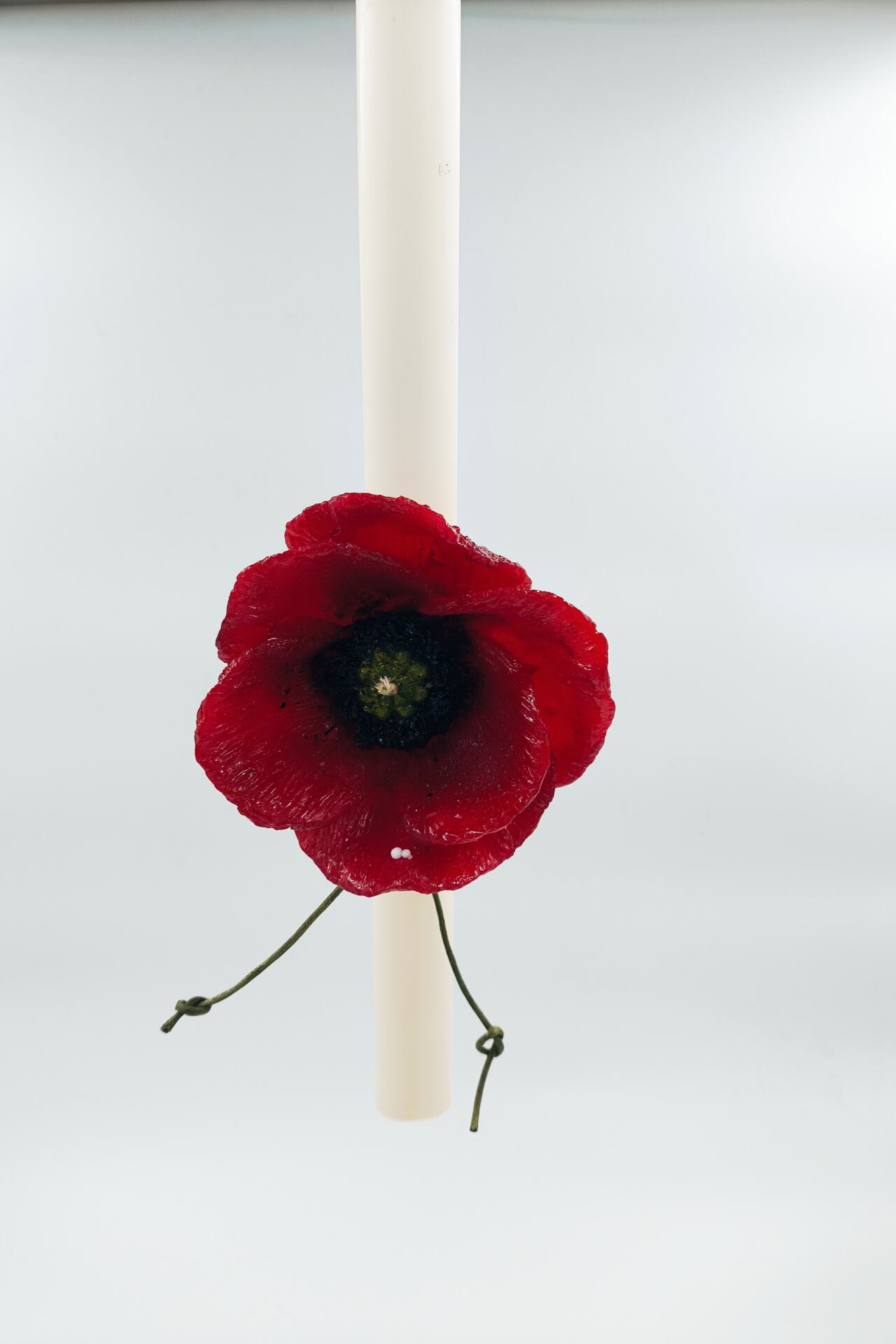 Λαμπάδα διακοσμημένη με κέρινο κόκκινο λουλούδι