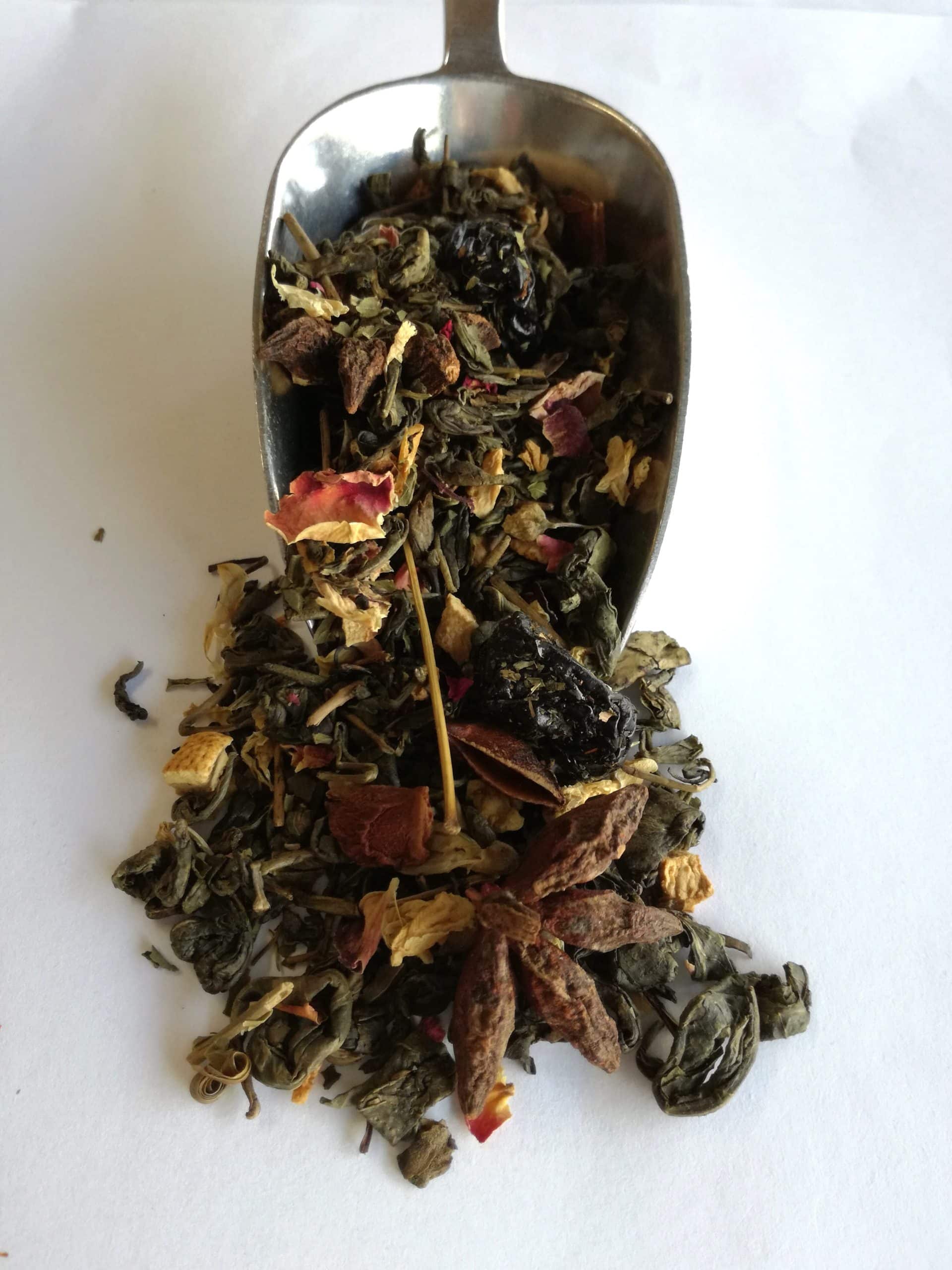 Σύνθεση. Τσάι πράσινο, κεράσι, λεμόνι, αστεροειδές γλυκάνισο, άνθη ακακίας, ροδοπεταλα, βανίλια.