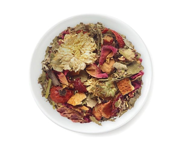 Μείγμα με κομμάτια γλυκού μήλου, φλούδα πορτοκαλιού, φύλλα φραγκοστάφυλου και αμπέλου, φύλλα μύρτιλου και βάτου, ροδοπέταλα, περιβλήματα κυνόροδου, αρωματική μέντα και άνθη χρυσάνθεμου σε συνδυασμό γεύσης passion fruit – γιασεμί.