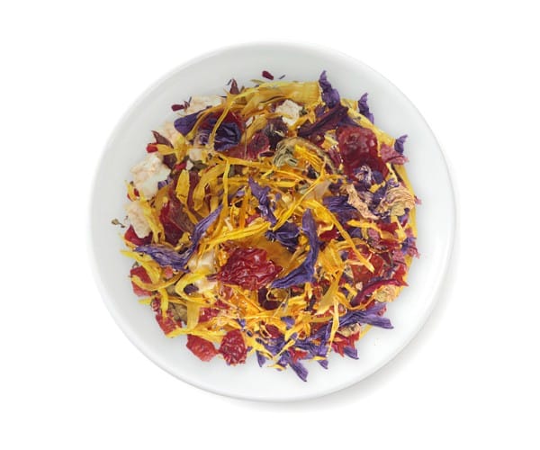 Με κομμάτια γλυκού μήλου, περιβλήματα κυνόροδου, φλούδα πορτοκαλιού, άνθη κόκκινου ιβίσκου, φύλλα και άνθη μολόχας, ροδοπέταλα, καλέντουλα και cranberry, το τσάι που κερδίζει την προτίμηση των παιδιών με την εμφάνιση και τη γεύση του.