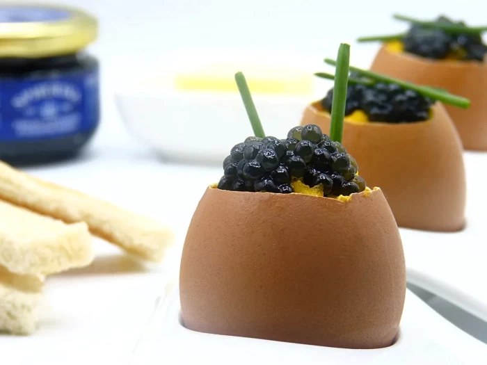 Σφαιροποιημένα “αβγά” οξύρρυγχου (διαμέτρου 3mm) με μαύρο χρώμα, υγρό εσωτερικό και καπνιστή, θαλασσινή γεύση, έτοιμα για κατανάλωση. Διατηρούν στο μαγείρεμα το σχήμα και το χρώμα τους. Μετατρέπουν κάθε ζεστό ή κρύο πιάτο σε συναρπαστικές γαστρονομικές συνθέσεις. Μοιάζουν με χαβιάρι (αβγά οξύρρυγχου), αλλά αποτελούν την κορυφαία βιώσιμη εναλλακτική στην κατανάλωση αβγών ψαριών, για απόλαυση υπεύθυνη και φιλική προς τους θαλάσσιους πόρους.