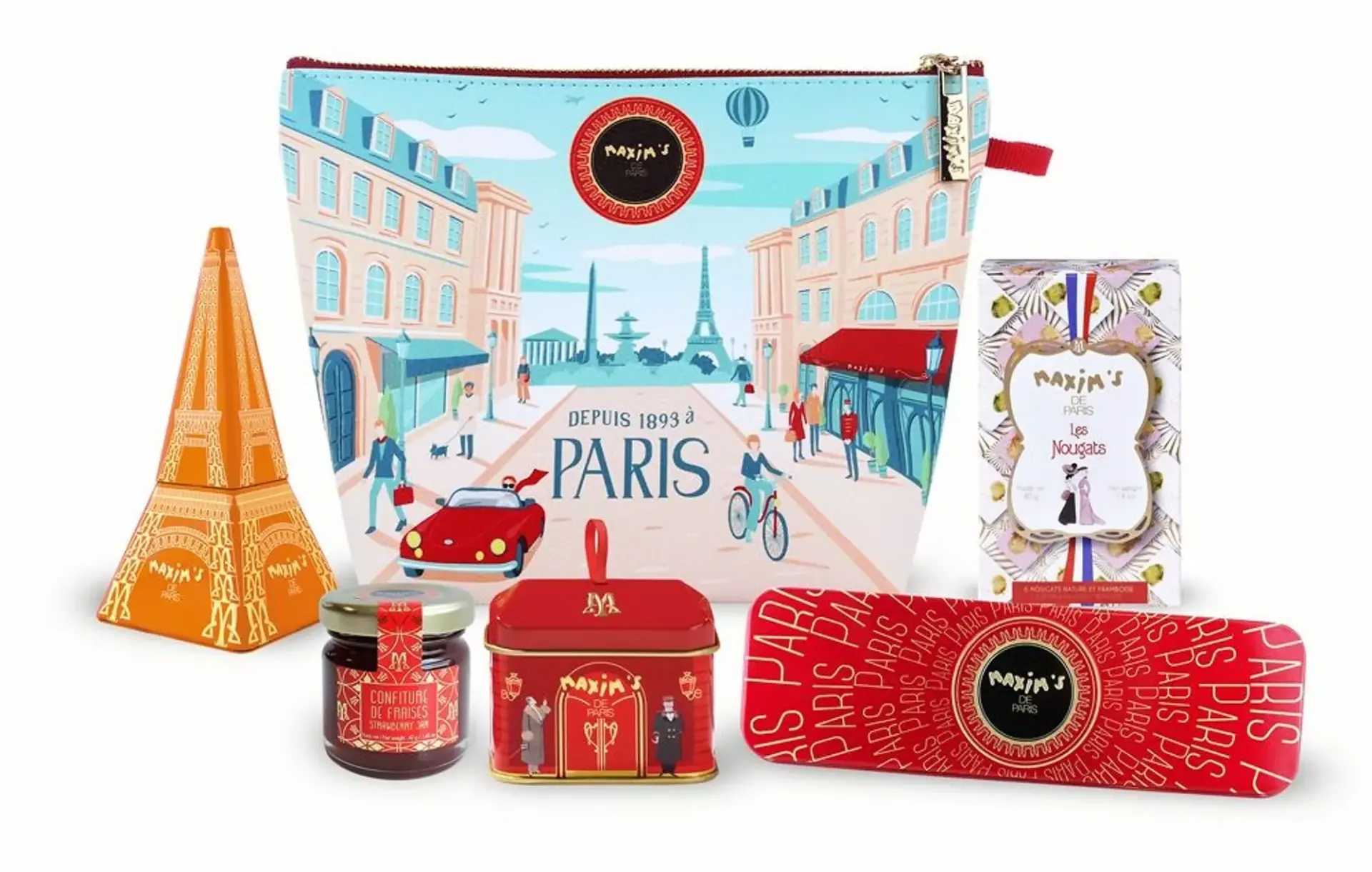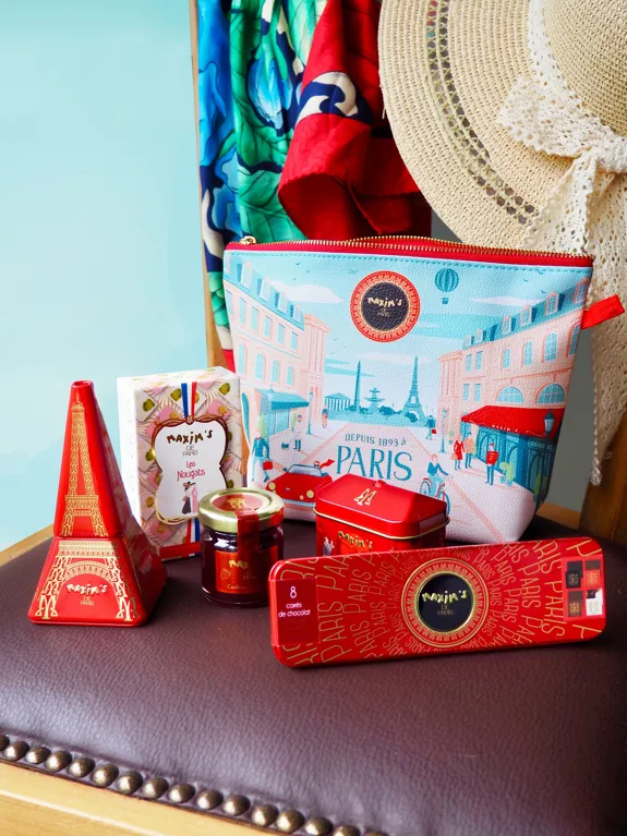 Η συλλογή μας “Bonjour Paris” είναι εμπνευσμένη από vintage αφίσες και μας βυθίζει στην τόσο κομψή παριζιάνικη διακόσμηση του δρόμου όπου βρίσκεται το εστιατόριο Maxim’s! Διατίθεται σε 3 προϊόντα, ανακαλύψτε το νέο μας πουγκί με φερμουάρ και την νόστιμη ποικιλία από σοκολάτες και γλυκά.