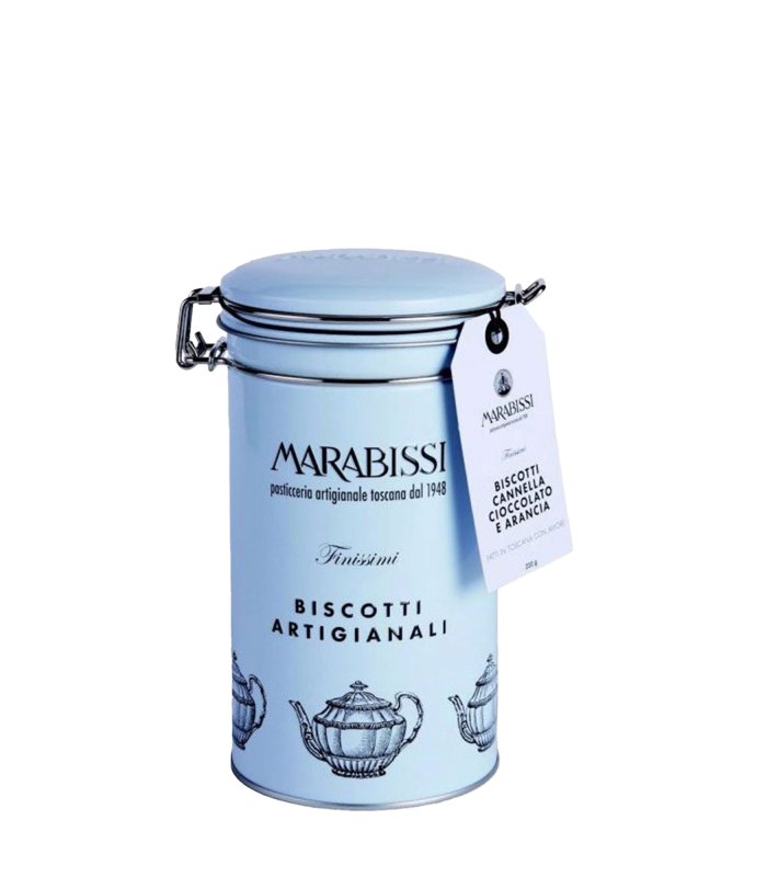 Αυθεντικά ιταλικά χειροποίητα biscotti από τον οίκο Marabissi, φτιαγμένα με πάθος, παράδοση και πρώτες ύλες εξαιρετικής ποιότητας. Η τραγανή τους υφή αγκαλιάζει την αρωματική ζεστασιά της κανέλας, τη βελούδινη ένταση της σοκολάτας και τη φρέσκια, ζωηρή νότα του πορτοκαλιού — ένας συνδυασμός που ξυπνά όλες τις αισθήσεις.
