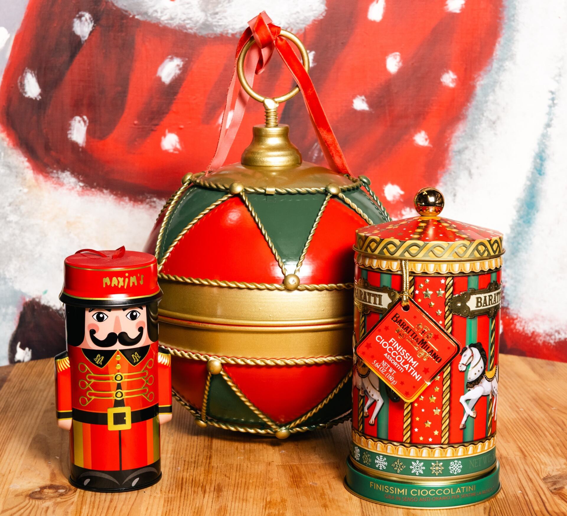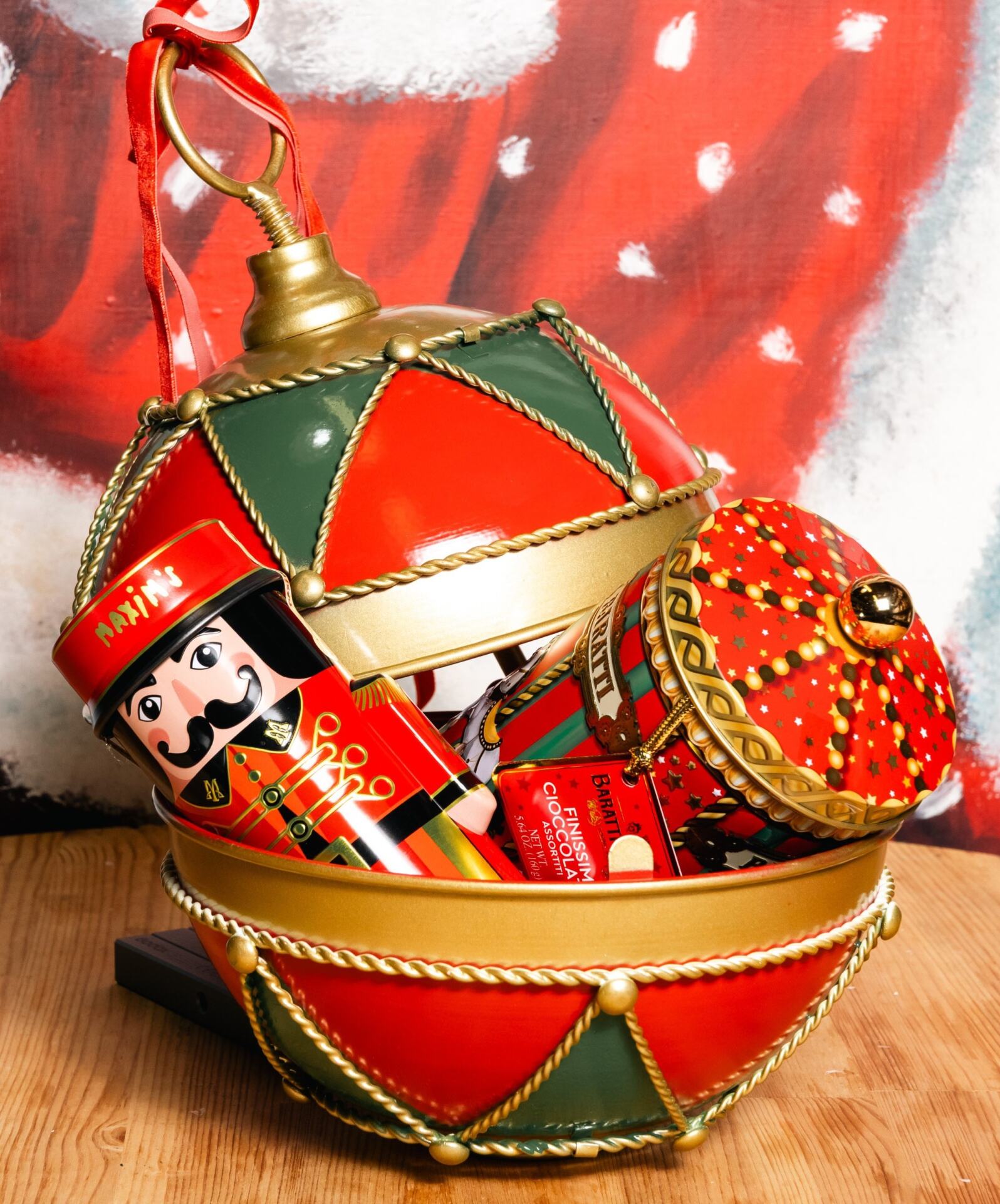 Κοκκινο μεταλλικο καρυοθραυστη με γαλλικα σοκολατακια απο Maxim de Paris 95γρ